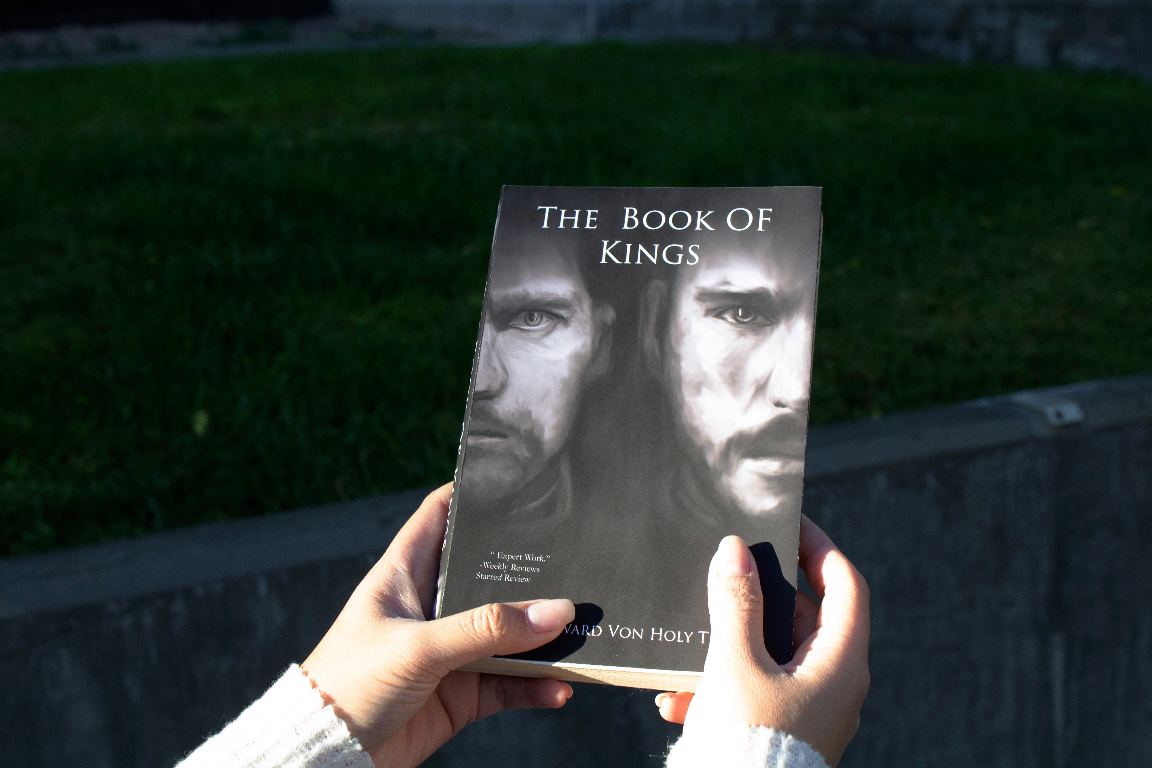 For this project, the goal was to design a book cover from an original book we had to come up with. The book I came up with is the Book Of Kings. I made the two main characters the main part of the book cover. It was made in a realistic concept art style illustration.