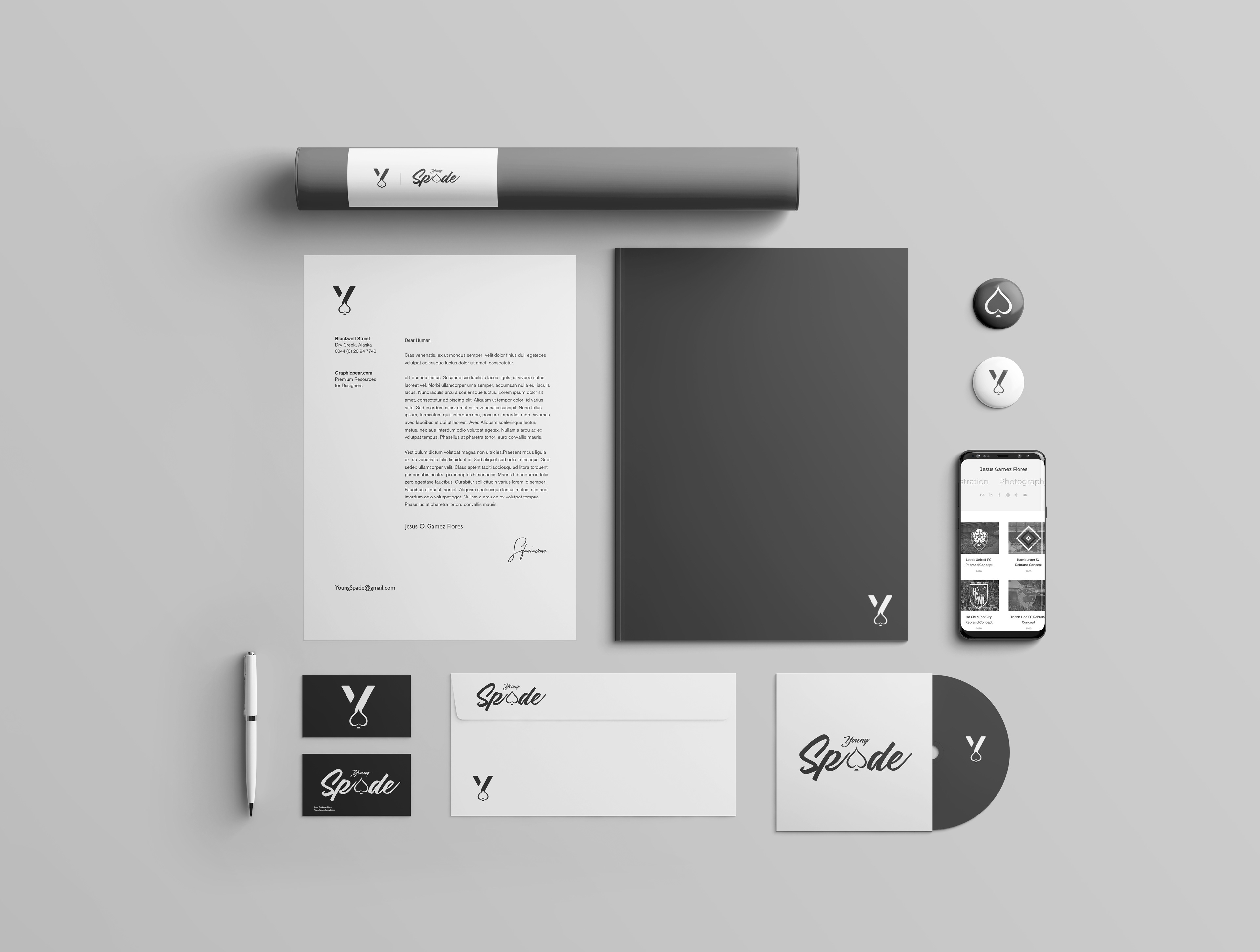 Young Spade Clothing Brand will represent sin city and its fashion. The logo is a combination logo with symbol and type. It also has a secondary logo and assets to represent the brand.